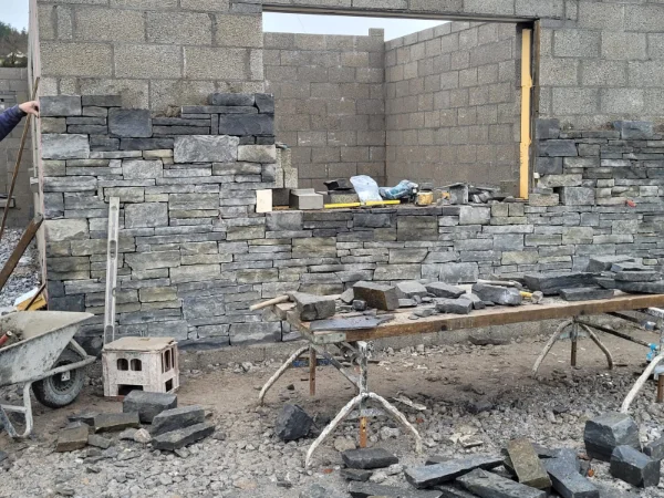 The exterior makes a strong impression with Liscannor stone cladding on the front porch and both front apexes—tying craftsmanship and local character together in a timeless finish.