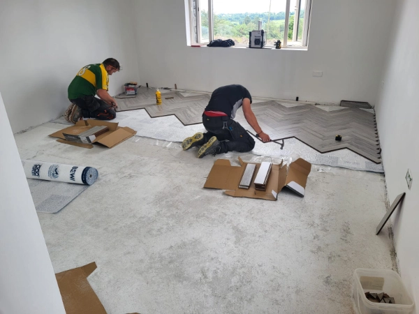 Underfloor heating powered by a modern heat pump runs throughout the home, paired with a laminate floor finish for warmth and style.
