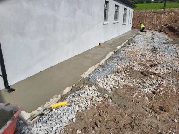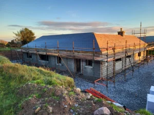 The main structure uses precision blockwork walls wrapped in 110 mm ExtroWall insulation for high thermal performance.