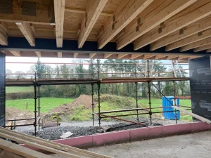 The main structure was constructed using a twin-wall timber frame system, chosen for its strength, thermal efficiency, and environmental performance. This modern method of construction allowed for faster build times without compromising on quality or durability.