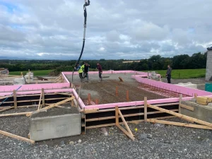 The project began with the installation of a raft foundation, providing a durable and stable base ideal for the site’s ground conditions. This system offers excellent load distribution and minimizes the risk of settlement, forming a solid structural platform for the build above.